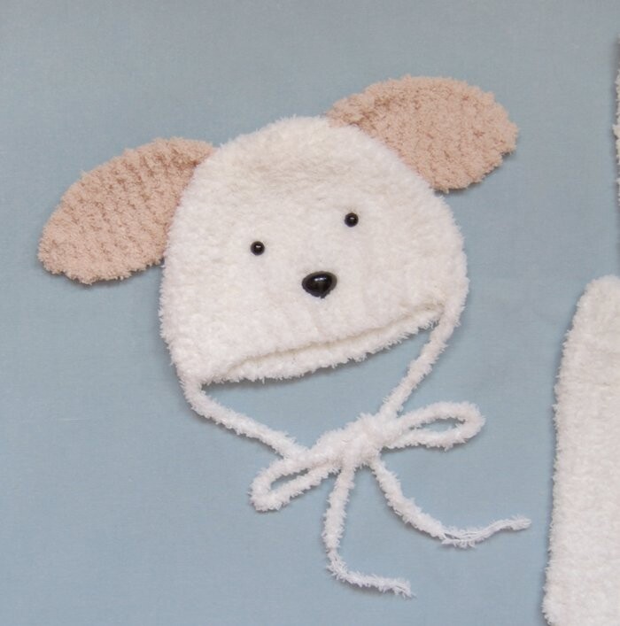 모자에는 귀여운 강아지를 연상시키는 귀와 눈, 코를 달아주었어요~